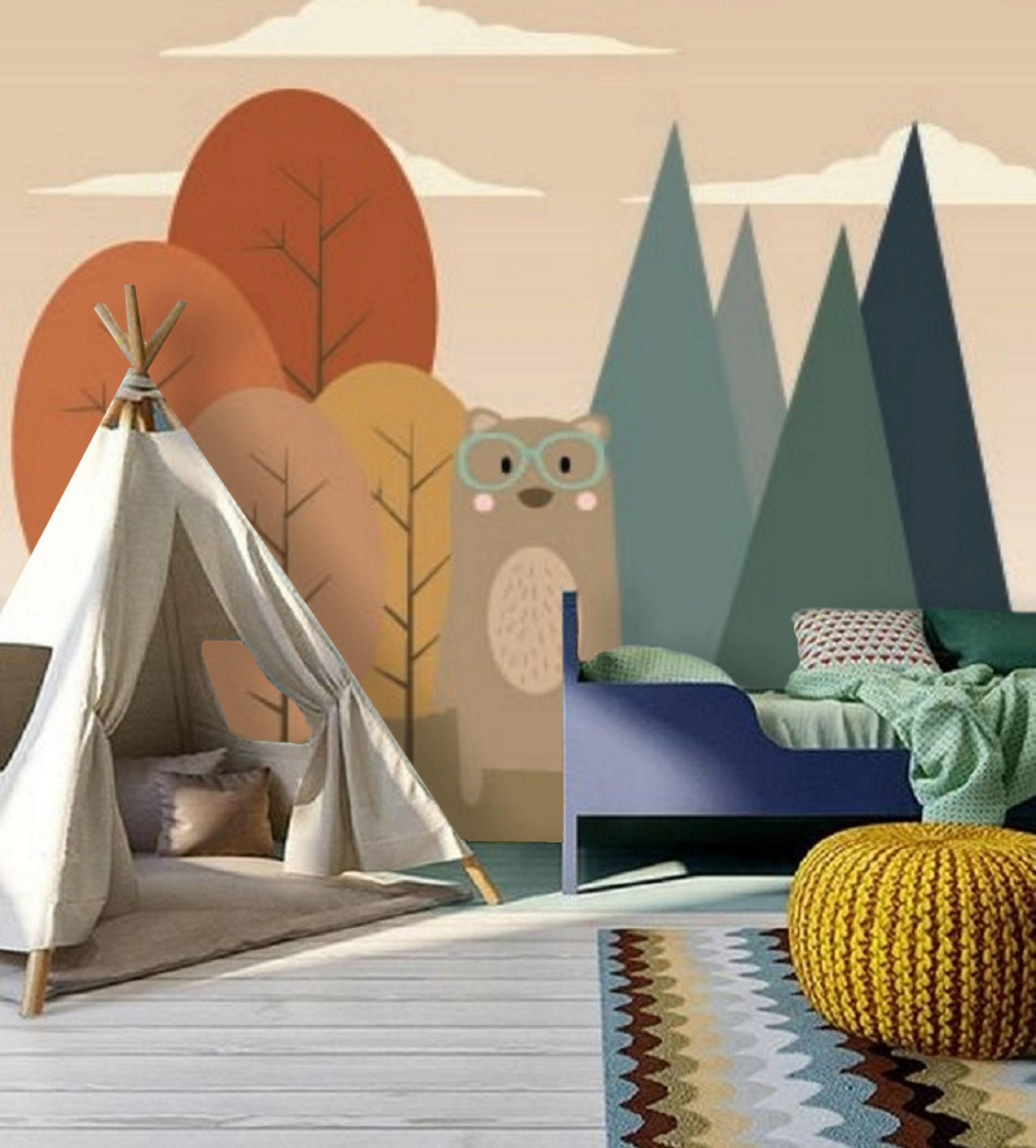 Bear In Forest Wall Mural Removable Wallpaper Kids Mural Peel Etsy De