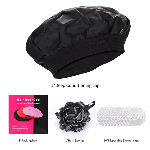 Zmleve Deep Conditioning Cap Steam Cap Waterproof Heat Therapy Cool Therapy Hair Cap Include 1 X Deep Conditioning Cap 10 X Disposable Shower Caps 1 X Bath Sponge Black Walmart Ca
